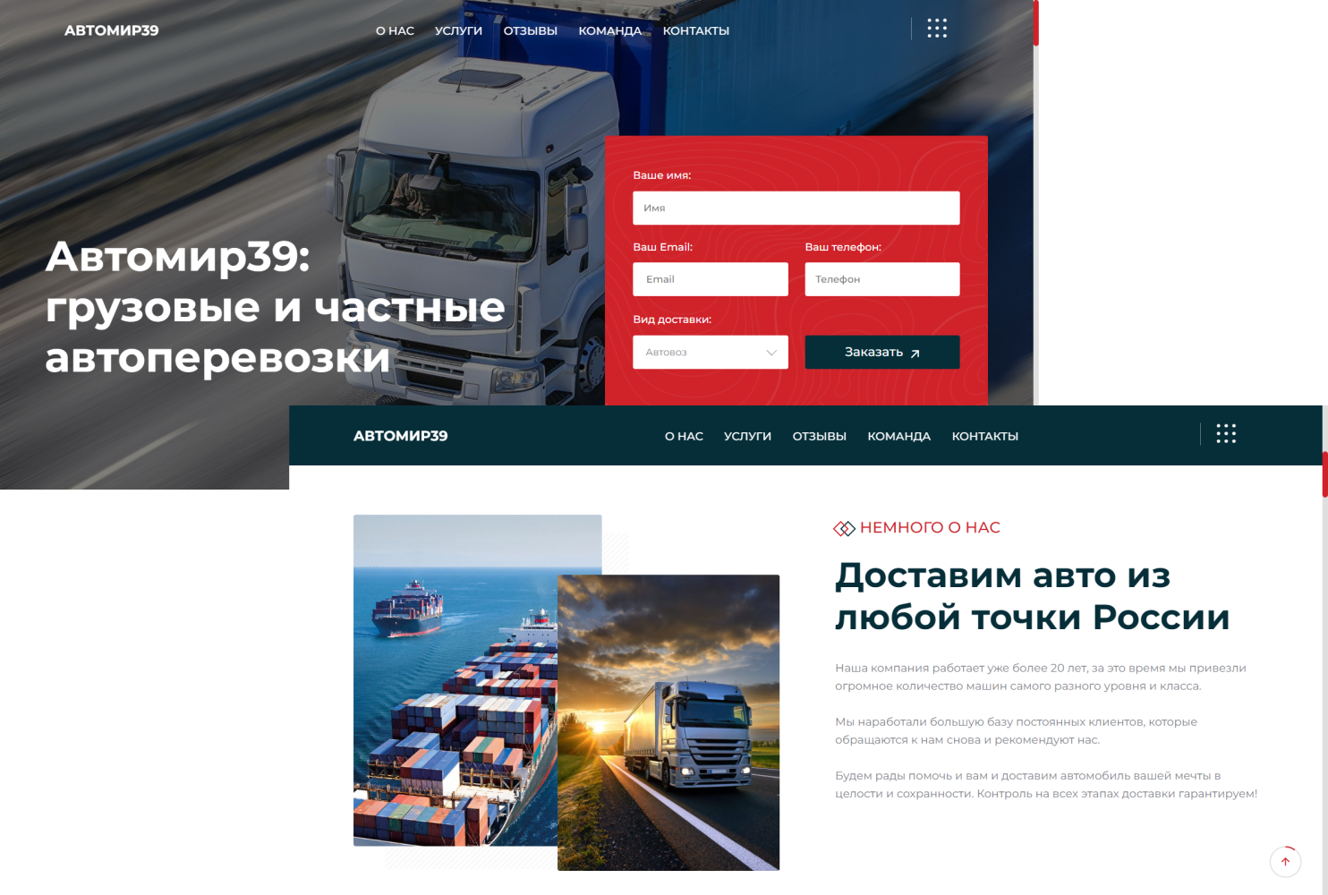К нам обратилась компания, имеющая несколько направлений деятельности, одно из которых - грузовые и частные автоперевозки. Компании нужен был небольшой краткий лендинг для