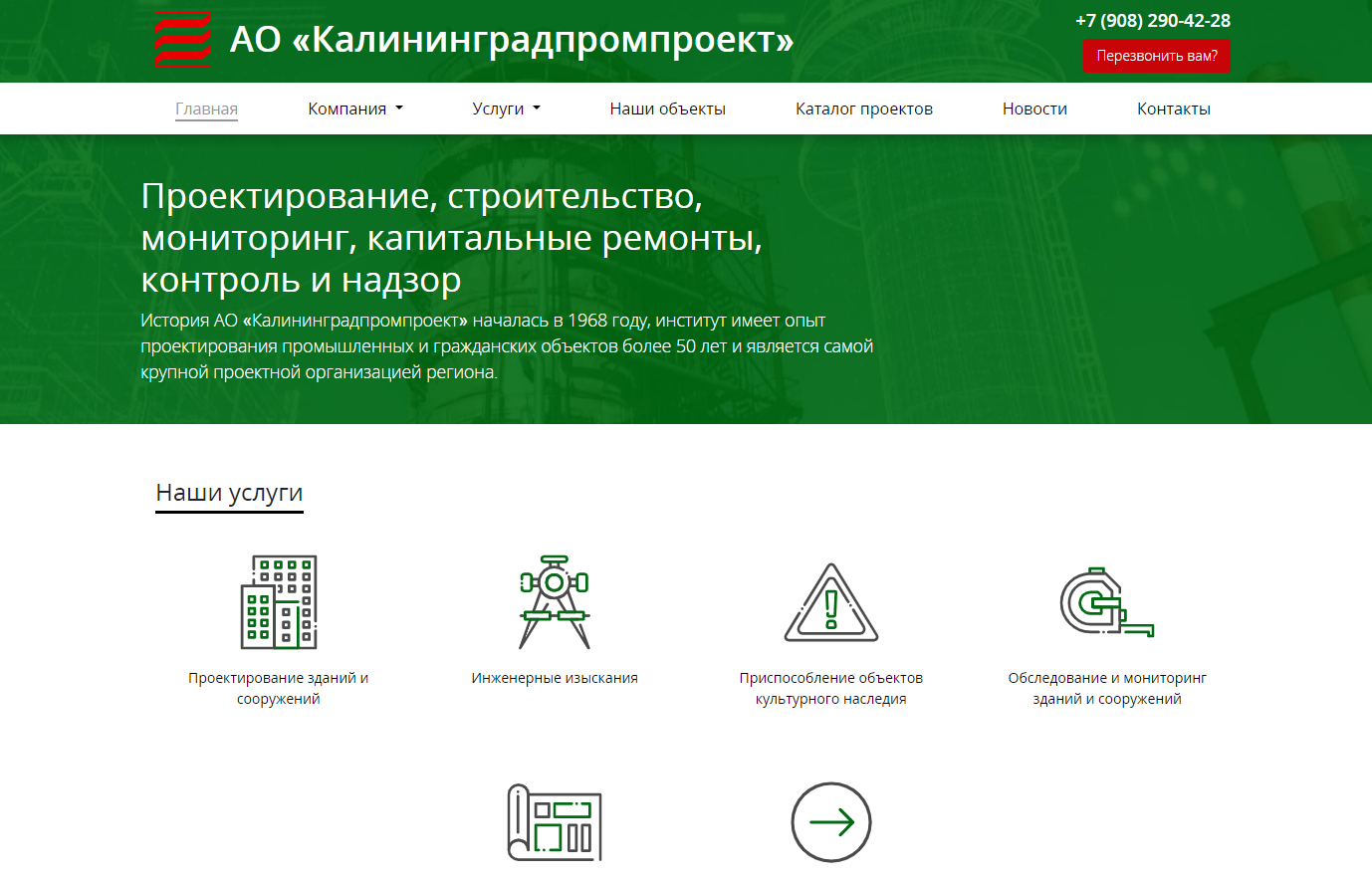 Новый сайт для проектной организации "Калининградпромпроект", которая занимается строительством, капремонтами, мониторингом и надзором за ходом строительства. Корпоративный сайт-визитка, который дает полное понимание о том, чем занимается компания, - лицо любой уважающей себя современной организации.