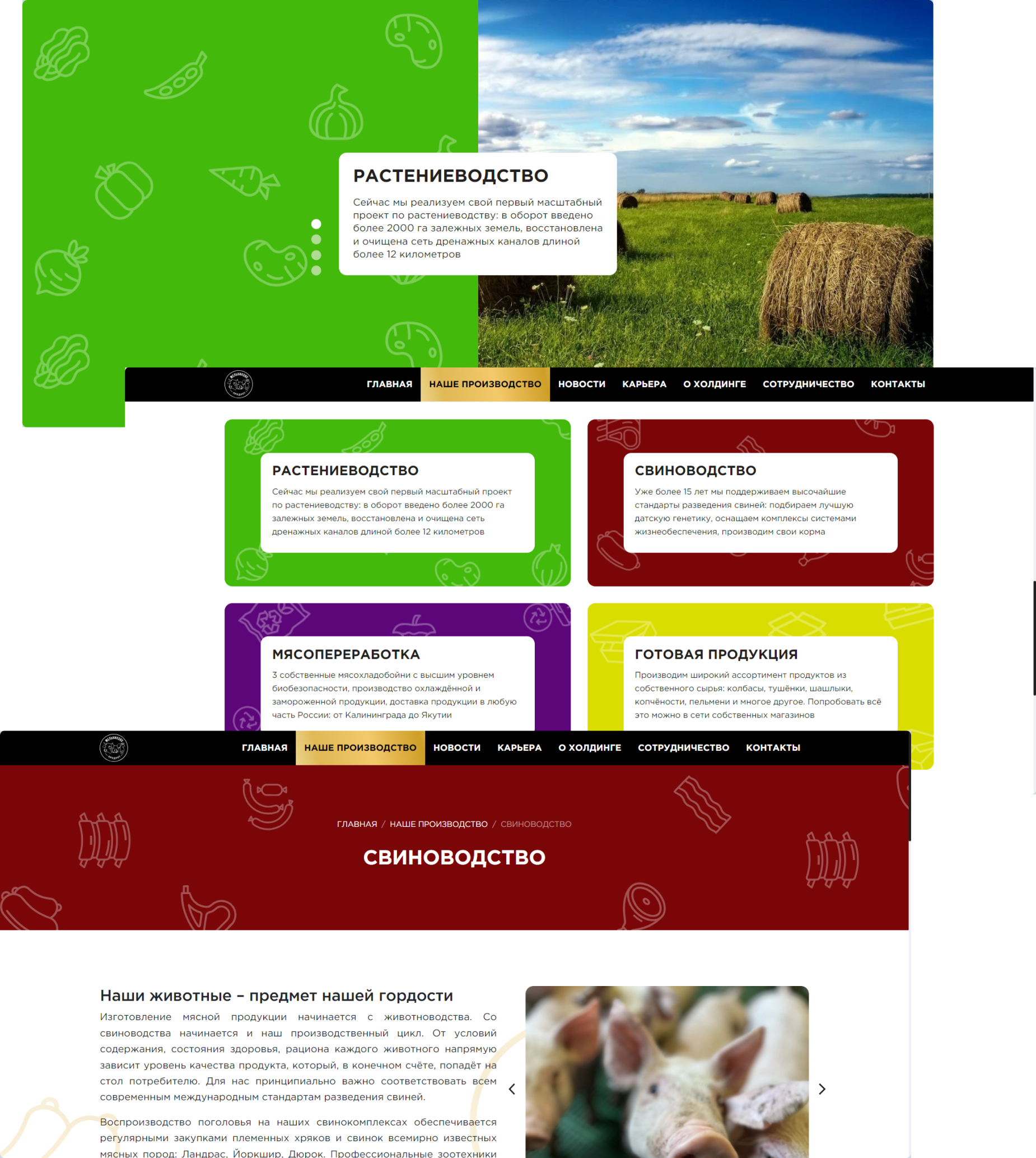 на данный момент их четыре: свиноводство, растениеводство, мясопереработка, готовая продукция.
